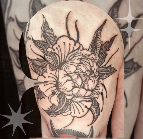 Lara (she/her) specializes in engraving-style blackwork tattoos.