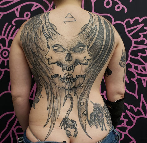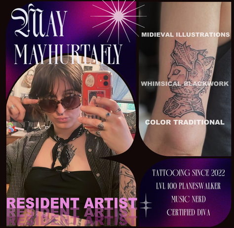 Adam (he/him) specializes in black & gray, american traditional and cartoon style tattoos. Our most experienced tattoer, and best story-teller.